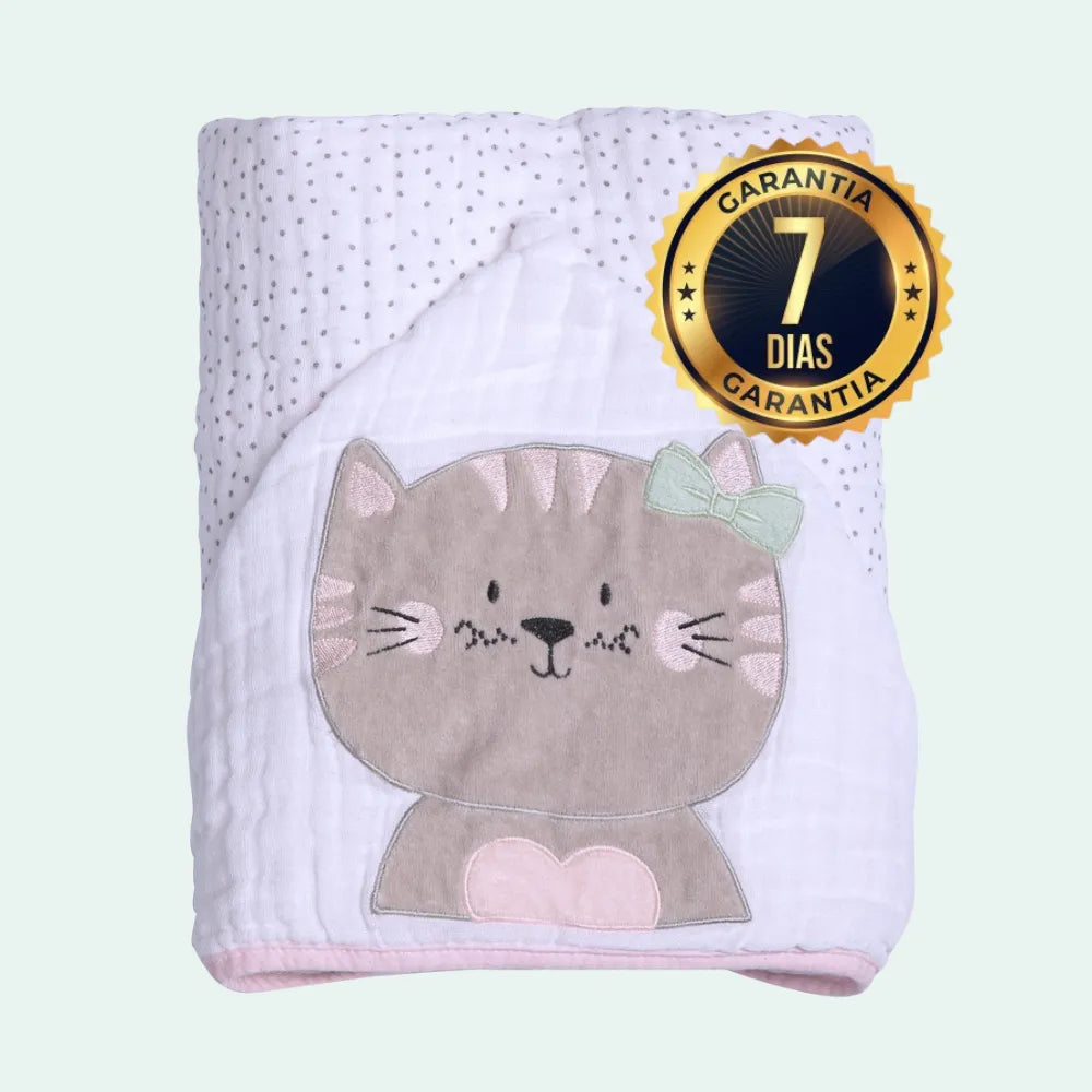 Transforme o banho em um momento ainda mais especial com a toalha de banho bebê com capuz Gatinha Mimi. Garanta já a sua!